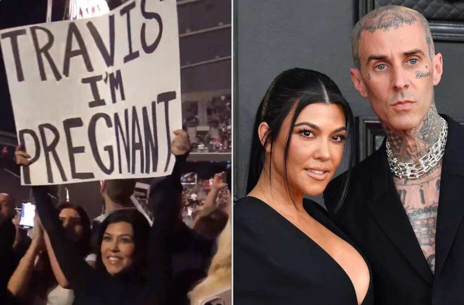 Kourtney Kardashian has just made the most significant pregnancy announcement and is so happy about it! The Keeping Up with the Kardashians star surprised her hubby by revealing she is expecting their first child during his concert. The Lemme founder stood in the front row of the Los Angeles stop of Blink-182’s tour on Friday night and held up a sign that read “Travis, I’m pregnant,” a callback to a moment from the band’s 1999 video for All the Small Things. Once the drummer saw the sign, he jumped down from the stage to embrace his wife and kiss her. The couple shared a video of the sweet moment on Instagram, and it’s already gone crazy viral online.