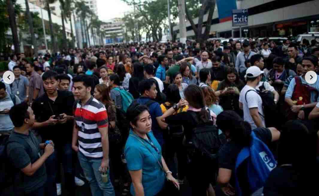 In the Philippines, a strong earthquake was reported to have rocked buildings in downtown Manila and its high-rise district of Makati. Twitter users posted pictures of office workers running out into the streets. The powerful quake shook the entire nation and was centered in Gutad, Pampanga province, north of Manila.